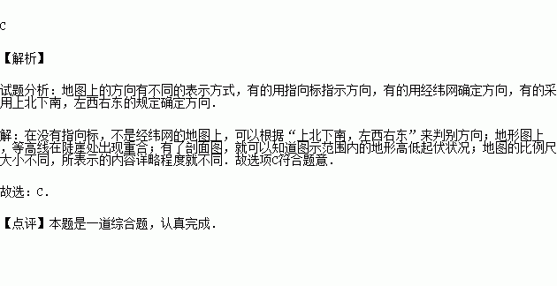 ①在任何地图上都可以根据“上北下南,左西右东”来判别方向