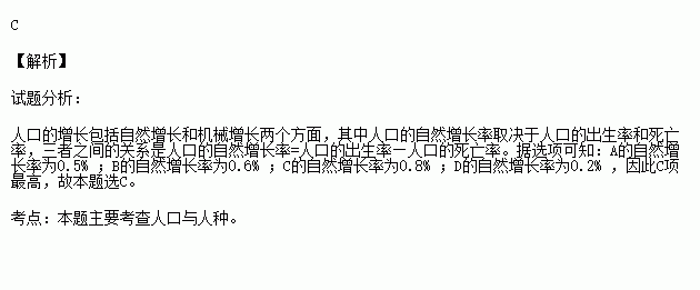 下列数据分别表示出生率和死亡率,其中自然增长率最高的一组是: