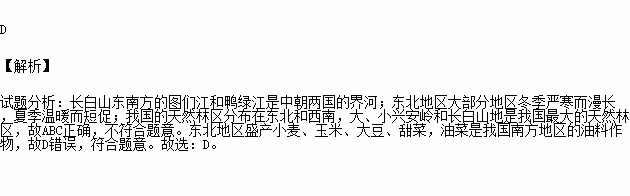下列对东北地区的描述,正确的是( )