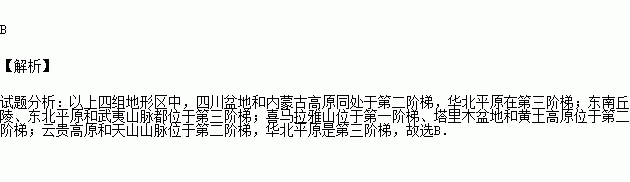下列地形区在同一级阶梯上的是