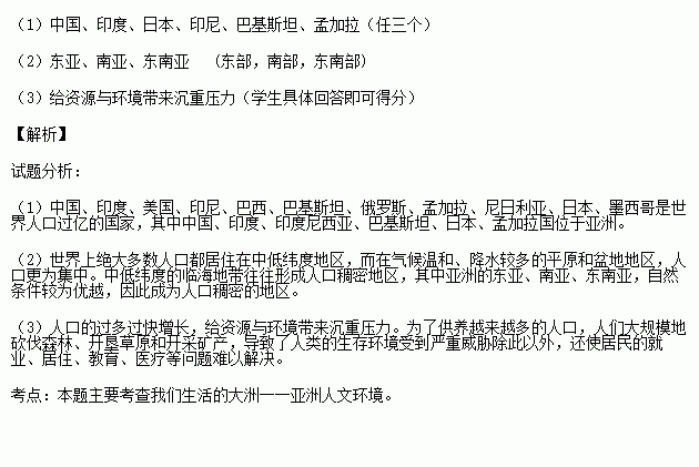 £¨3£©ÑÇÖÞÈË¿ÚÖڶ࣬¶Ô×ÊÔ´ºÍ»·¾³ÓÐʲôӰÏ죿£¨1·Ö£©