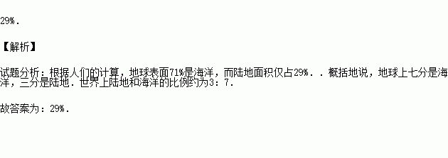 陆地面积占地球表面的比列为 .