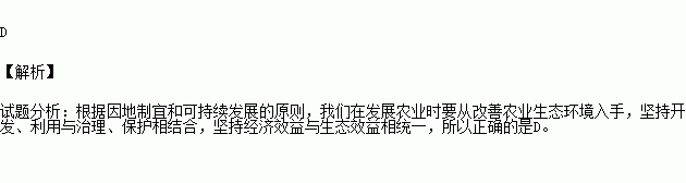 D.从改善农业生态环境入手,坚持开发、利用与治理、保护相结合,坚持经济效益与生态效益相统一