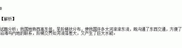 造成我国许多大河滚滚东流,既沟通东西交通,又蕴藏着丰富的水能资源的原因是( )