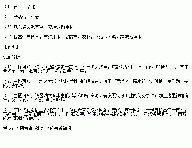 (1)该地区以高原和平原地形为主:西部为____________高原,水土流失严重;东部为___________平原,由河流冲积而成,其中黄河是主力,海河、淮河等也起了重要作用。
