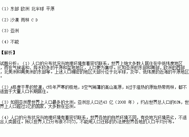 £¨4£©ÓÉ´Ë¿´À´ÊÀ½çÈ˿ڷֲ¼ºÜ²»¾ùÔÈ£¬________£¨Ìî¡°ÄÜ¡±»ò¡°²»ÄÜ¡±£©ÓÃÈË¿ÚÇ¨ÒÆµÄ°ì·¨Ê¹ÊÀ½ç¸÷µØµÄÈË¿ÚÆ½¾ù·Ö²¼¡£