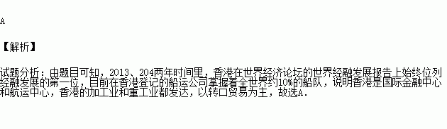 2013、204两年时间里,香港在世界经济论坛的世界经融发展报告上始终位列经融发展的第一位。目前在香港登记的船运公司掌握着全世界约10%的船队。这说明香港:( )