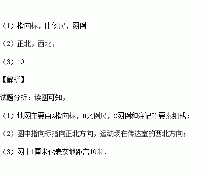 (2)图中指向标指向_____方向,运动场在传达室的_____方向。