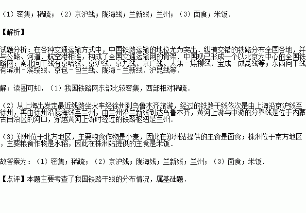 (3)沿京广铁路从北京到广州,如果车内用餐要体现沿途城市的饮食特点,郑州站提供的主食应该是 ,株洲站提供的主食则是 .