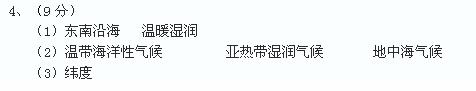 (2)东南沿海主要气候类型有          气候、         气候和             气候。