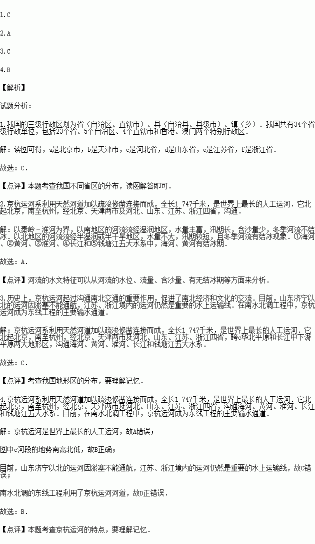 1.京杭运河途径6省市,下列河段与其所在省份连线正确的是( )