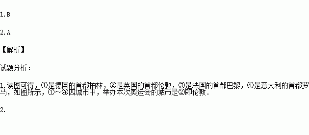 1.如图所示,①~④四城市中,举办本次奥运会的是