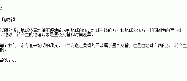 我们每天自东方迎来黎明的曙光,自西方送走黄昏的日落,这是由于( )