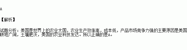 美国是世界上的农业大国,农业生产效率高,成本低,产品市场竞争力强,主要原因是( )