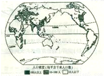 从世界人口分布图中可以看出,世界人口稠密地带主要位于