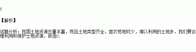 (3)从图中可以看出,我国耕地、林地占土地面积 %,难利用的土地占土地总面积 %,因此我国土地资源的现状是 、 比重小, 比重大,后备土地资源 (充足或不足)