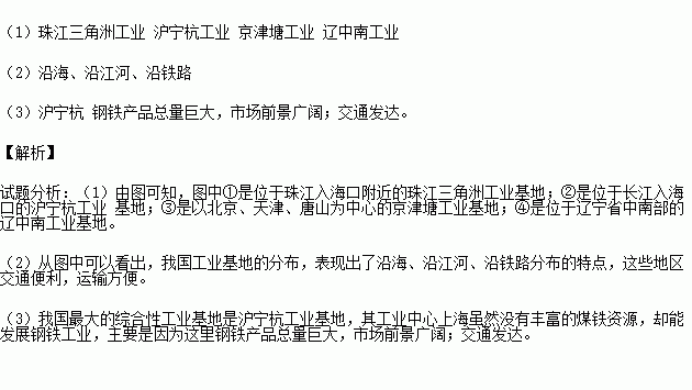 (3)我国最大的综合性工业基地是 基地,其工业中心上海虽说没有丰富的煤铁资源,却能发展钢铁工业的原因是 。