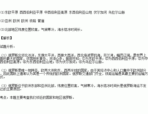 (2)俄罗斯是一个地跨 洲和 洲的国家,传统上被称为 洲的国家。俄罗斯主要的运输方式: 和 。