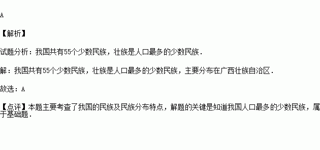 “五十六个民族,五十六枝花,五十六个兄弟姐妹是一家…”,这首歌曲唱出了各族人民的心声.请你判断,我国人口最多的少数民族主要所在省(区)是( )