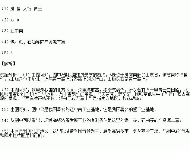(5)下图四幅气温曲线和降水柱状图中,能反映本区的是( )