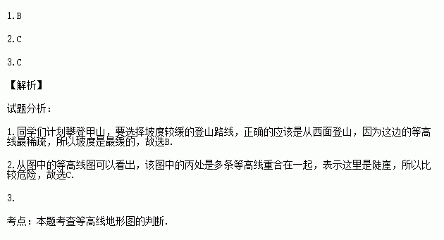 1.同学们计划攀登甲山,想选择坡度较缓的登山路线,正确的是