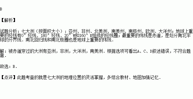 A.东西半球的分界线 B.南北半球的分界线