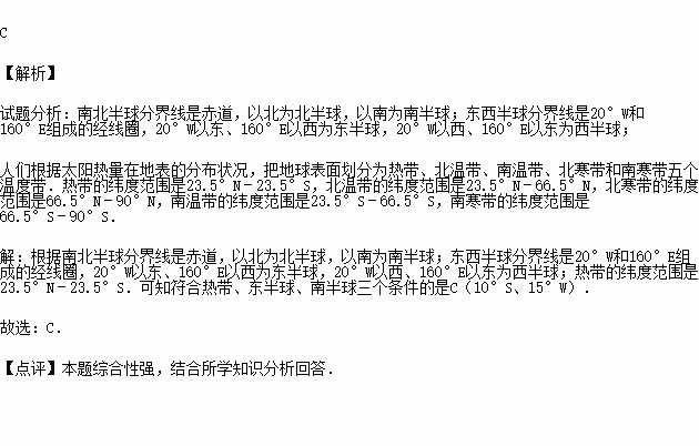 C.10°S、15°W D.70°N、0°
