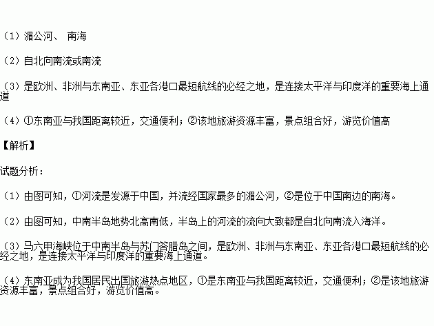 (2)中南半岛地势北高南低,半岛上河流流向大致是 。