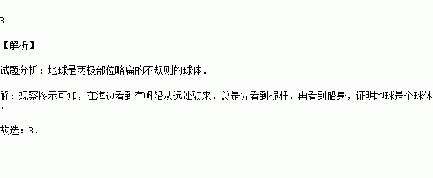在海边观察远处驶来的轮船,会出现图中①至③所示的现象,这种现象反映的地理事实是( )