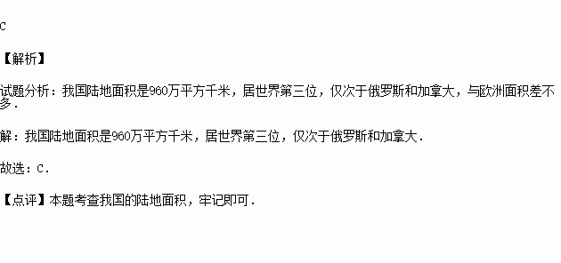 我国海陆兼备,国土辽阔,陆地领土面积居世界第三位,约为( )