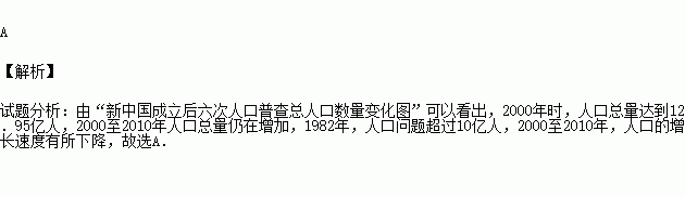 分析"新中国成立后六次人口普查总人口数量变化图",结论错误的是
