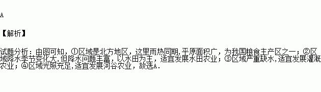 A.①区域雨热同期,为我国粮食主产区之一