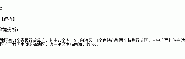 A.闽 B.粤 C.琼 D.桂