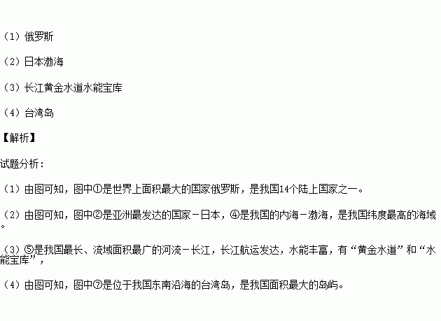 (1)①是世界上面积最大的国家,是我国14个陆上邻国之一。