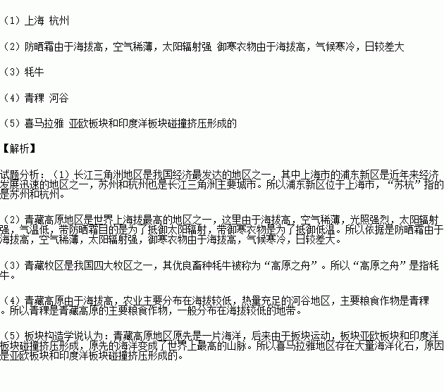 小天同学暑假期间外出考察青藏高原和长江三角洲。读图完成问题。