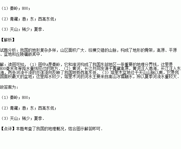 (1)图中A是 (山脉),这里是我国 毫米年等降水量线经过的地方.