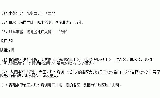 ⑴从图中可以看出,我国水资源的空间分布趋势: