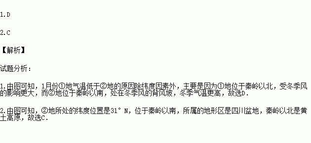 1.1月份①地气温低于②地的原因除纬度因素外,主要是因为①地