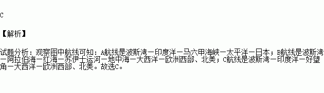 D.波斯湾—阿拉伯海—红海—苏伊士运河—地中海—大西洋—欧洲西部、北美