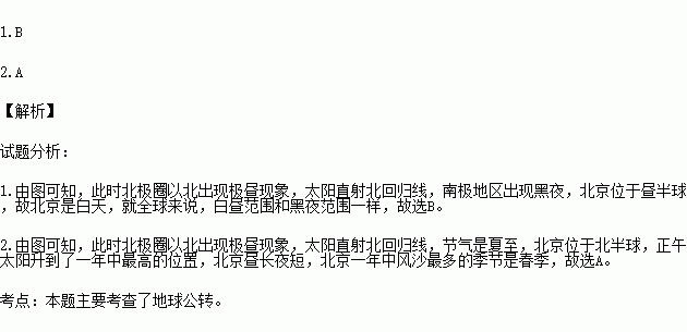 2.在此图表示的季节中,北京