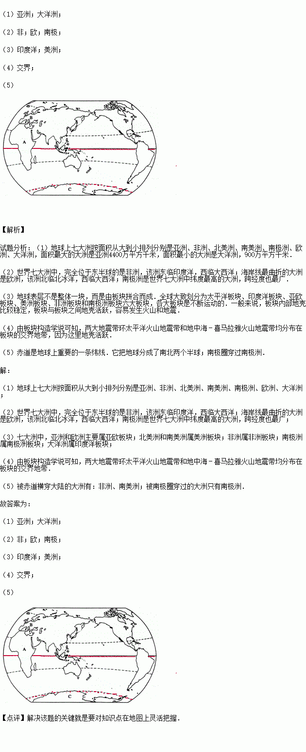 (1)世界上面积最大的洲是 ,面积最小的洲是 .