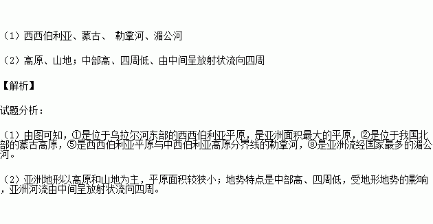(2)河流特征还深受地形的影响。亚洲地形以 为主,地势特点为 。受地形的影响,河流具有 的特点。