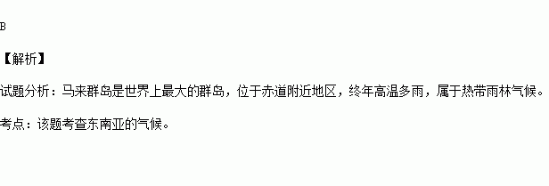 D、东南亚和印度全属于热带季风气候