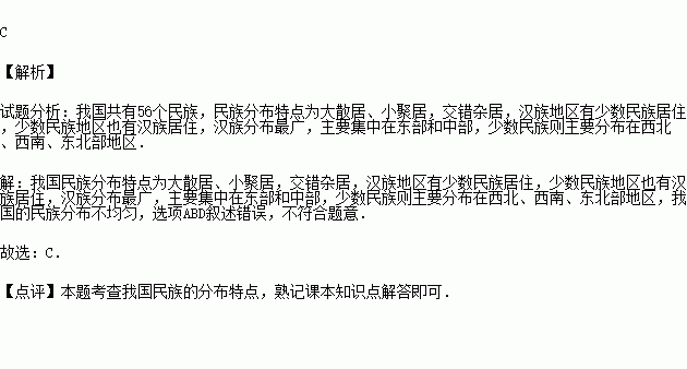 C.各民族分布具有“大散居,交错杂居,小聚居”的特点