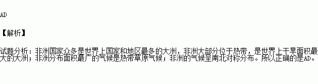 B.非洲大部分位于热带,是世界上湿润面积最大的大洲