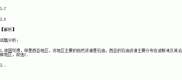 1.甲区域主要的自然资源是