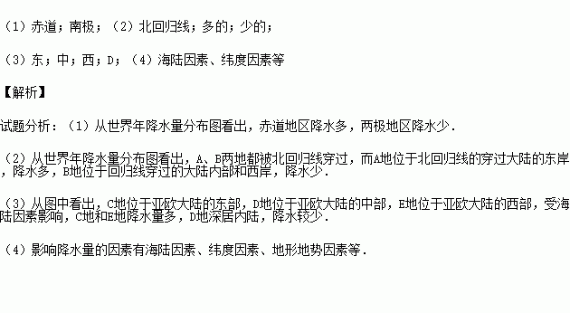 读“世界年平均降水量分布图”,回答问题.