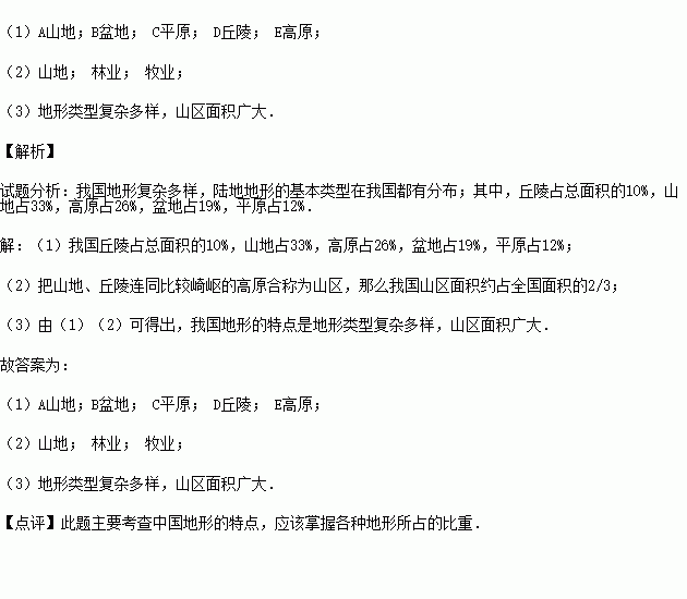 如图是我国各类地形面积比例示意图,读图回答下列问题.