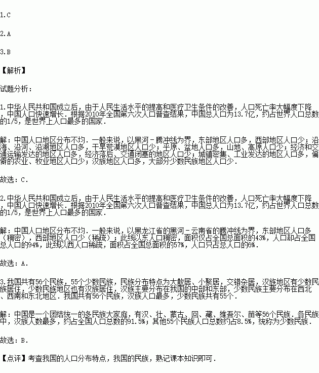 1.我国人口的分布特点是( )