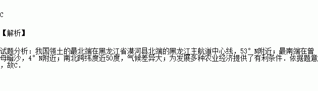 从中国在地球上的位置来看,为我国发展多种农作物生产提供有利条件的是